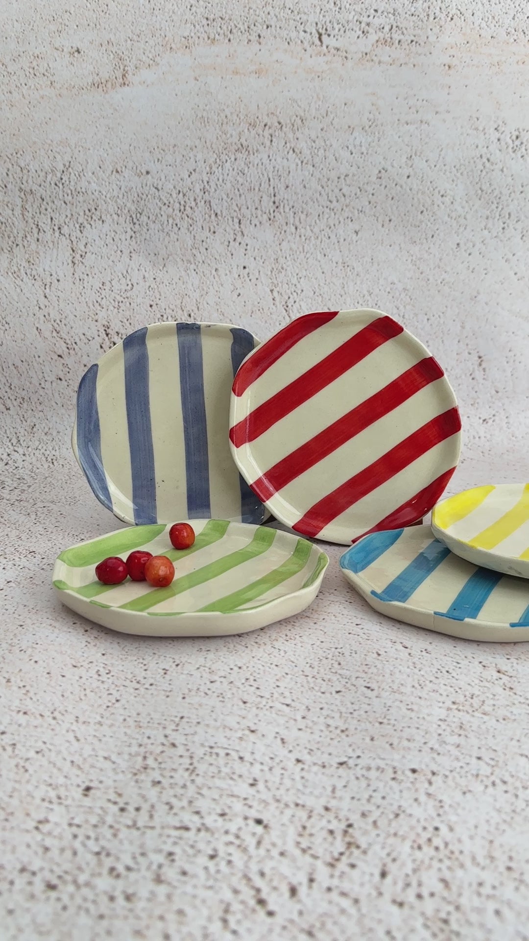 Ceramic Green stripe plate, 6.3x6.3 Inches (Set of 4)